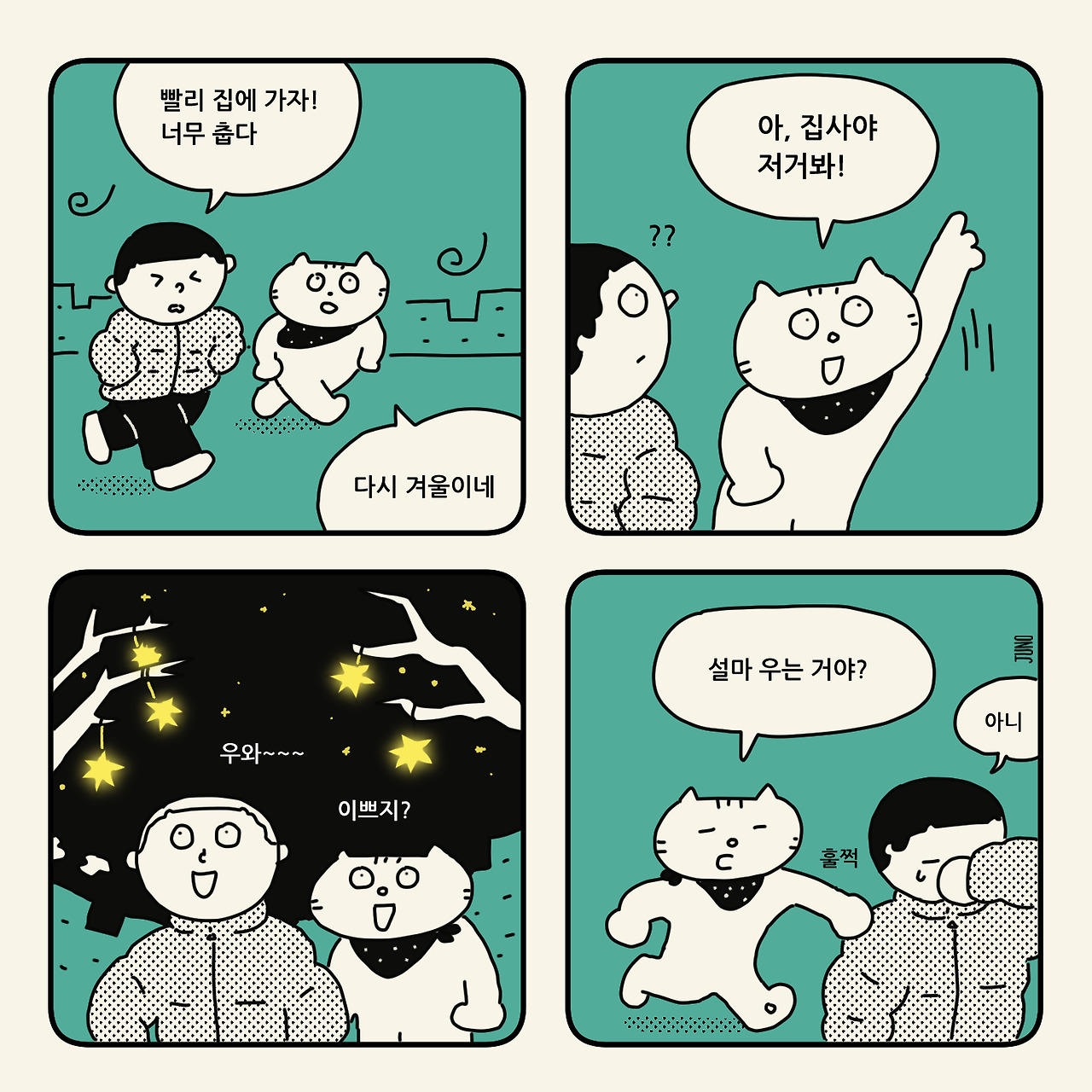 늦은 시간, 합정역 7번 출구를 빠져나오다 하늘을 올려다봤다. 연말이 지났지만 여전히 나무 위에는 조명들이 매달려 있었다. 아직 크리스마스인 것 같은 기분마저 들었다. 평소에는 잘 몰랐는데, 문득 너무 아름다워서 폰을 꺼내 사진을 찍었다.