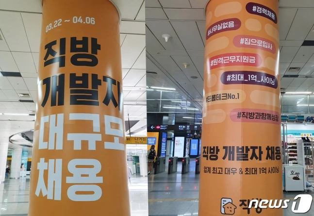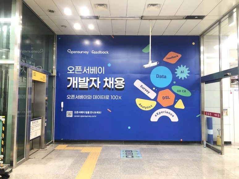 지하철을 내리는 순간부터 회사 채용 관련한 전광판 광고, 옥외 광고, display, wrapping 광고로 도배되어 있는 것을 볼 수 있습니다.