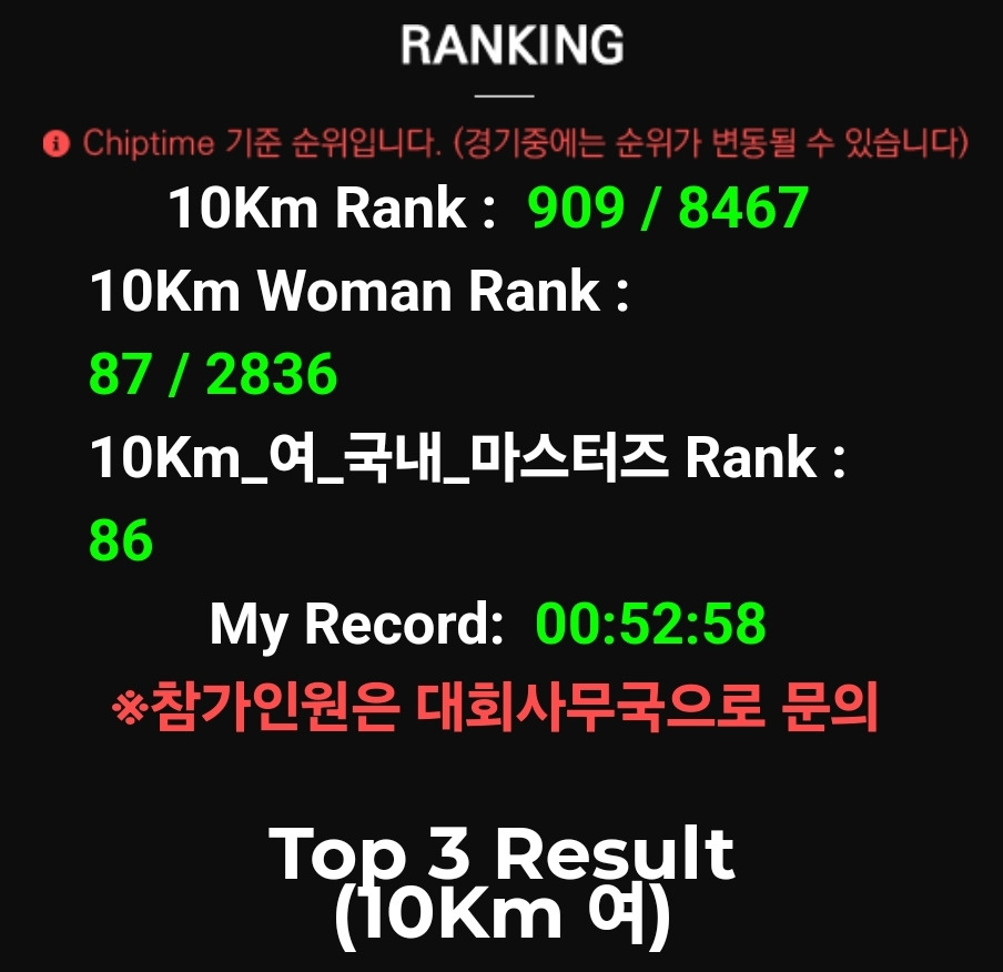 시간을 재는 10km였던 나는 그 많은 인파에서 벗어나 나와의 약속이었던 시간을 통과하기 위해 페이스 조절을 하며 사람들 틈 사이로 빠져나가면서 달리기 시작했다.