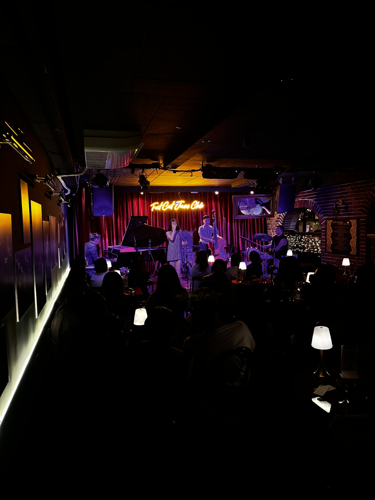 드럼, 더블 베이스, 피아노 그리고 여성보컬 이 세션이 가져다주는 재즈는 이 밤을 더 낭만 있게 만들어준다.