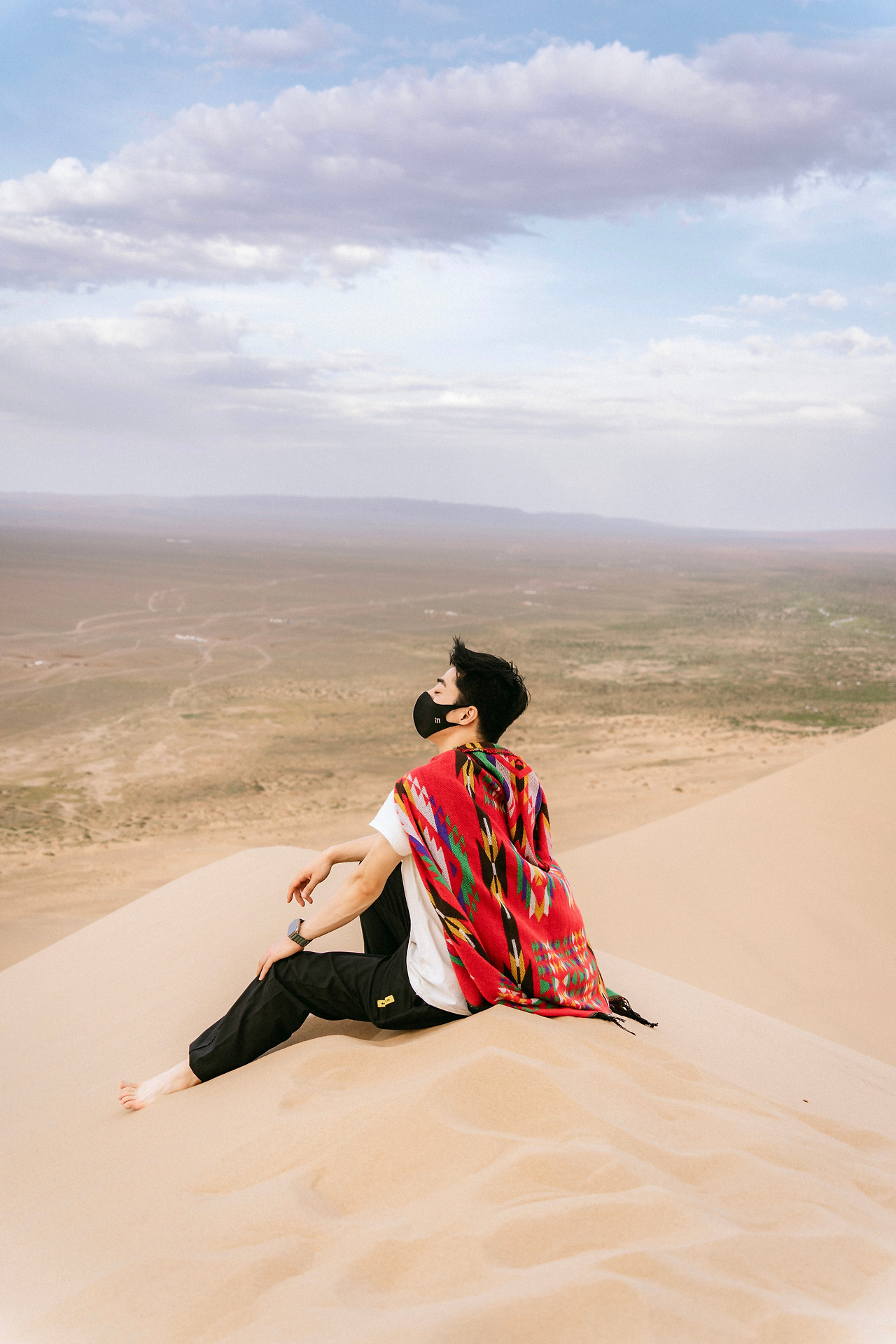 인적 없는 봉우리에 다다라서 가만히 주위를 둘러본다. 베이지색 사막산은 또 다른 이국의 색채로 물들인다.