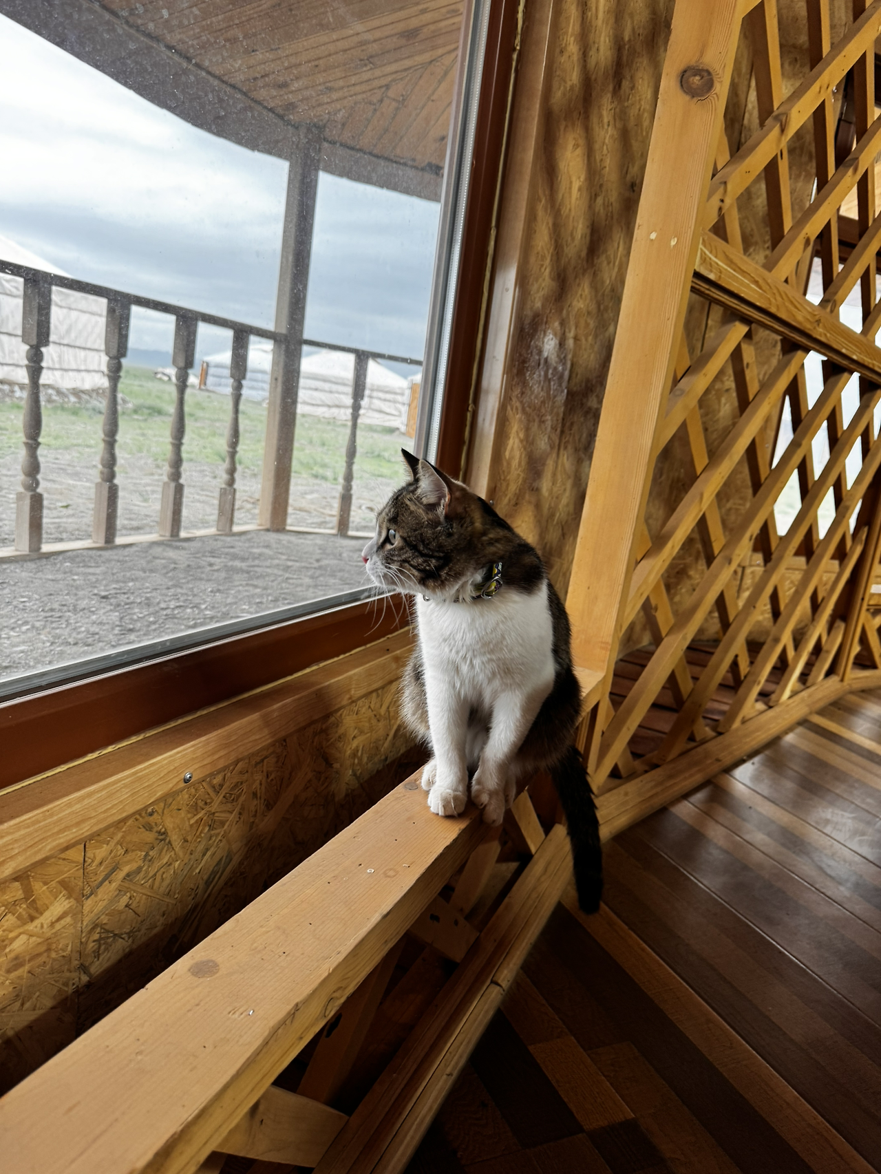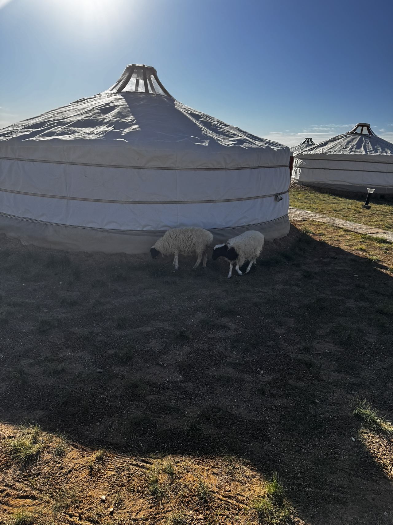 다음날 아침 부스럭거리는 소리에 깨서 나가보니 양이 게르 벽면에 머리를 긁고 있었다.