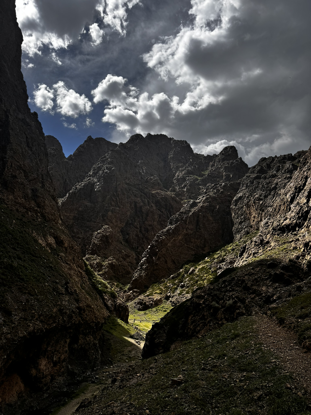 입구를 지나가면 좌우 산맥 사이에 큰 길이 이어져있다.