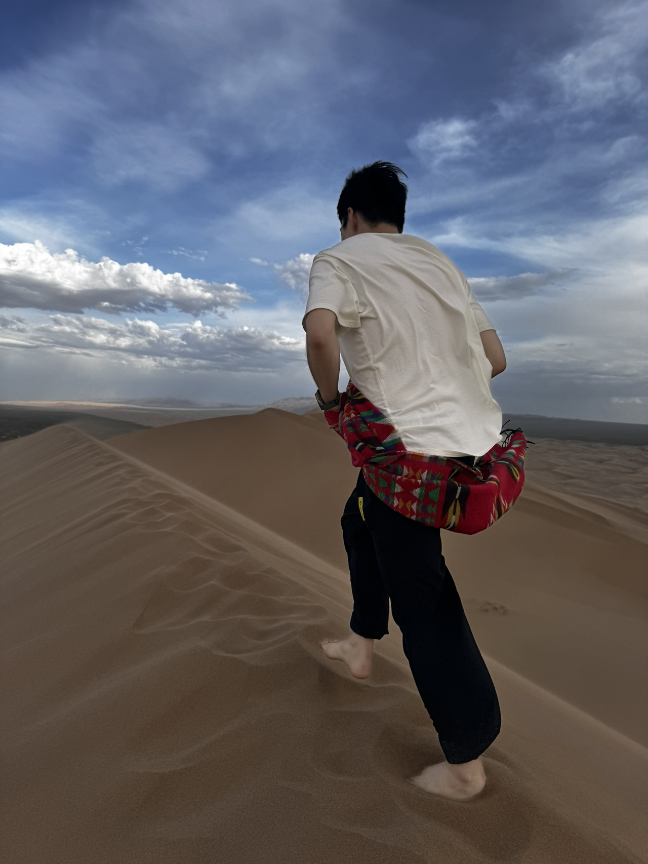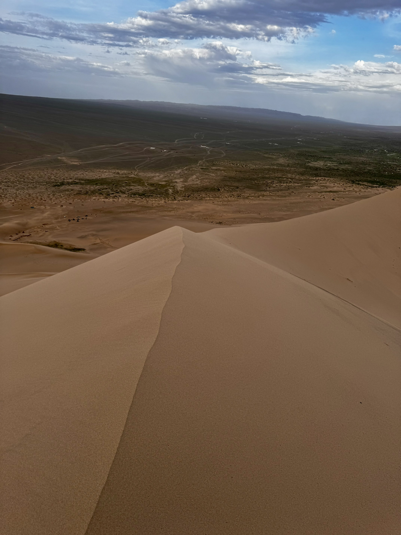 일행들이 하나 둘 낙타에서 내리고 이제 정면에 사막산을 마주한다. 그렇게 높게는 안보였지만 경사가 가파르다. 뛰어서 올라가긴 힘든 경사다.