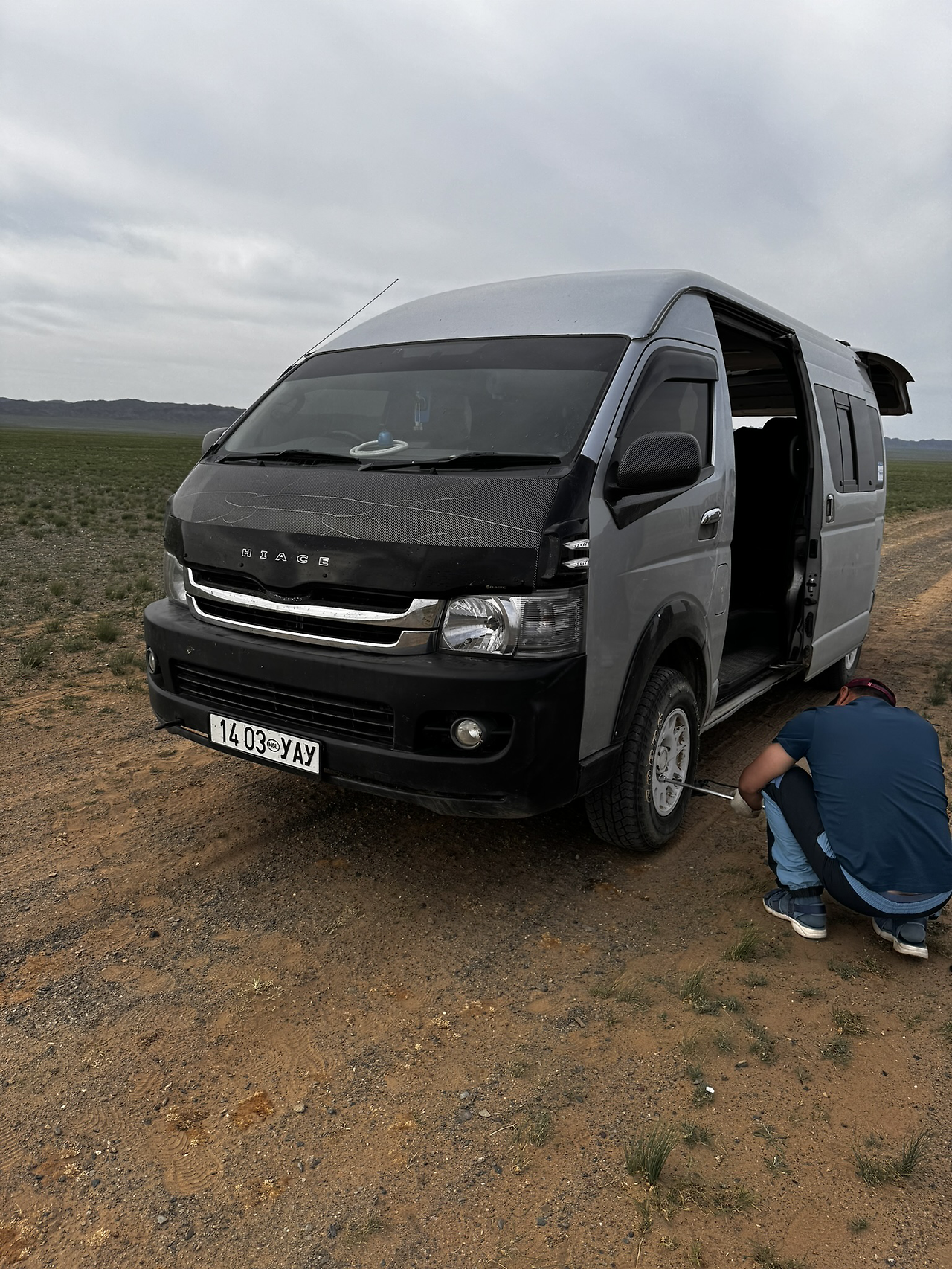 그리고 비포장도로를 계속 달린다. 그렇게 또 몇 시간을 갔을까 갑자기 차를 세운다. 길이 험해서였을까 타이어에 문제가 생겨 갈아야 한다고 잠시 쉬었다 가잔다. 기사분은 내려서 트렁크에 있는 여분의 타이어를 꺼내더니 금방 교체를 마친다.