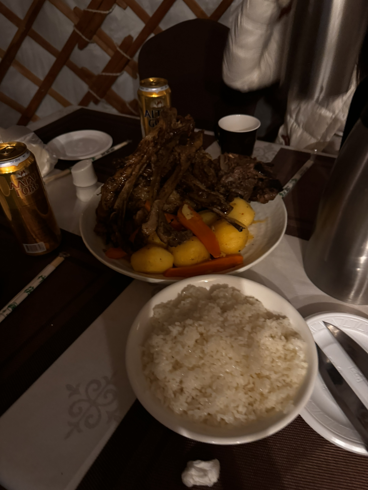 근래 비가 많이 와서 가는 길이 험해져 평소보다 더 많은 시간이 지연되었고 우리 인원이 많다 보니 화장실만 들러도 한 시간은 그냥 소요되었으며 식사주문도 양이 많아 식사 나오기까지도 보통 한 시간이 소요되었다. 이러한 요소들이 누적되어 결국 일정이 밀렸고 금일 관광지를 가지 못할 거라는 얘기를 들었다. 다들 인정은 하지만 수긍은 쉽지 않았다. 하여 오늘 조금 일찍 숙소에 가서 쉬고 내일 아침 일찍 출발해 다음날 관광지와 오늘 관광지인 고비사막을 가기로 계획을 조율했다.