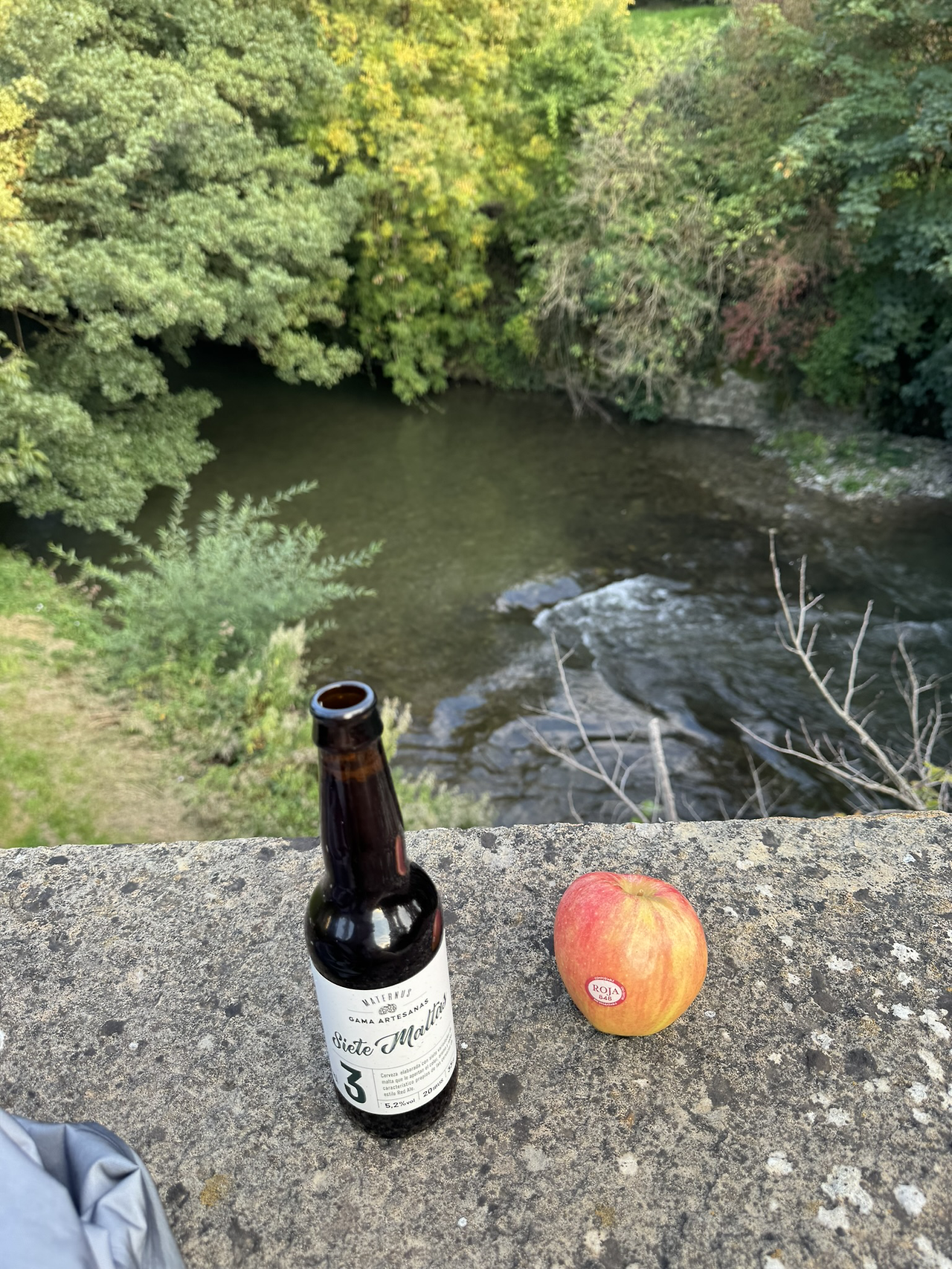 디저트가 아쉬워 사과 하나와 슈퍼에서 샀던 맥주 한 병을 들고 나와 여유로운 디저트를 마저 즐긴다.