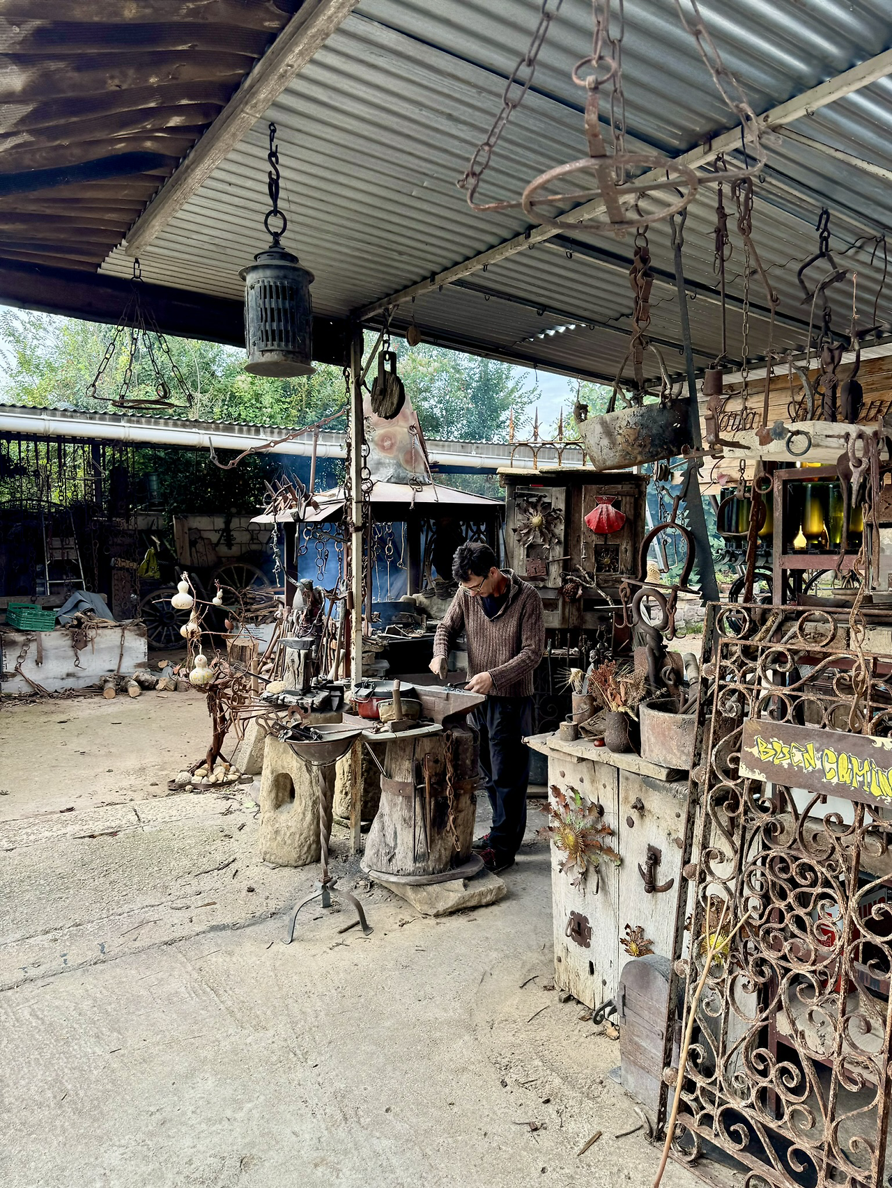 지나가는 길 쇠붙이가 부딪히는 소리에 옆을 돌아보니 망치질에 집중하는 대장간의 주인으로 보이는 인물은 작업이 한창이다. 순례자 몇 명이 무리 지어 들어가도 눈길 한 번 주지를 않는다. 나도 그 무리를 뒤따라 조심스레 들어가서 그의 작품들을 조용히 둘러보고 나온다.