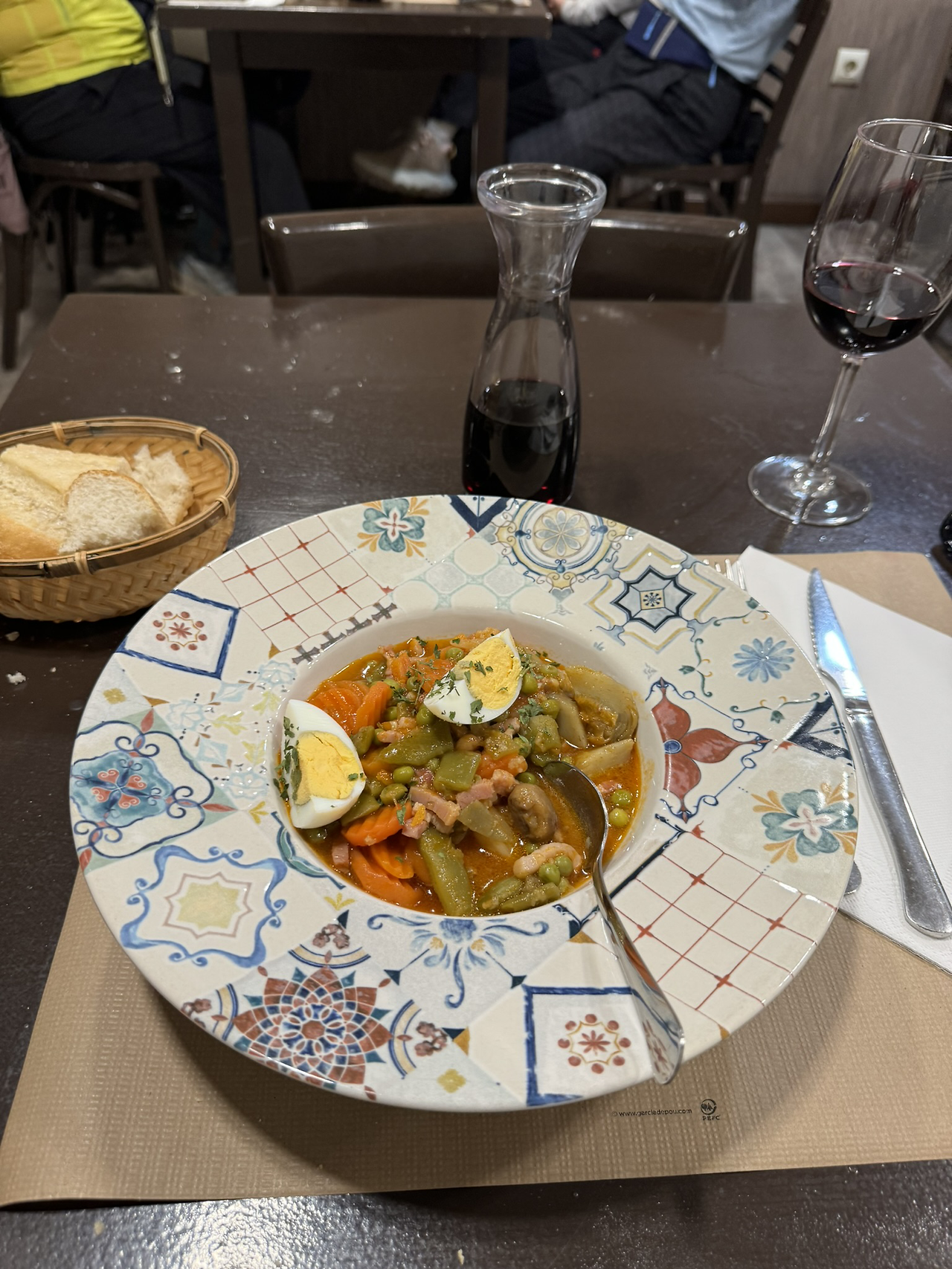여정중 느낀 점이지만 식당에서 주문하는 것과는 다르게 알베르게에서 주문하는 메뉴 델 디아는 다소 복불복이 있는 듯하다. 썩 괜찮은 알베르게가 있는 반면 영 아니다 싶은 알베르게도 간혹 있다.