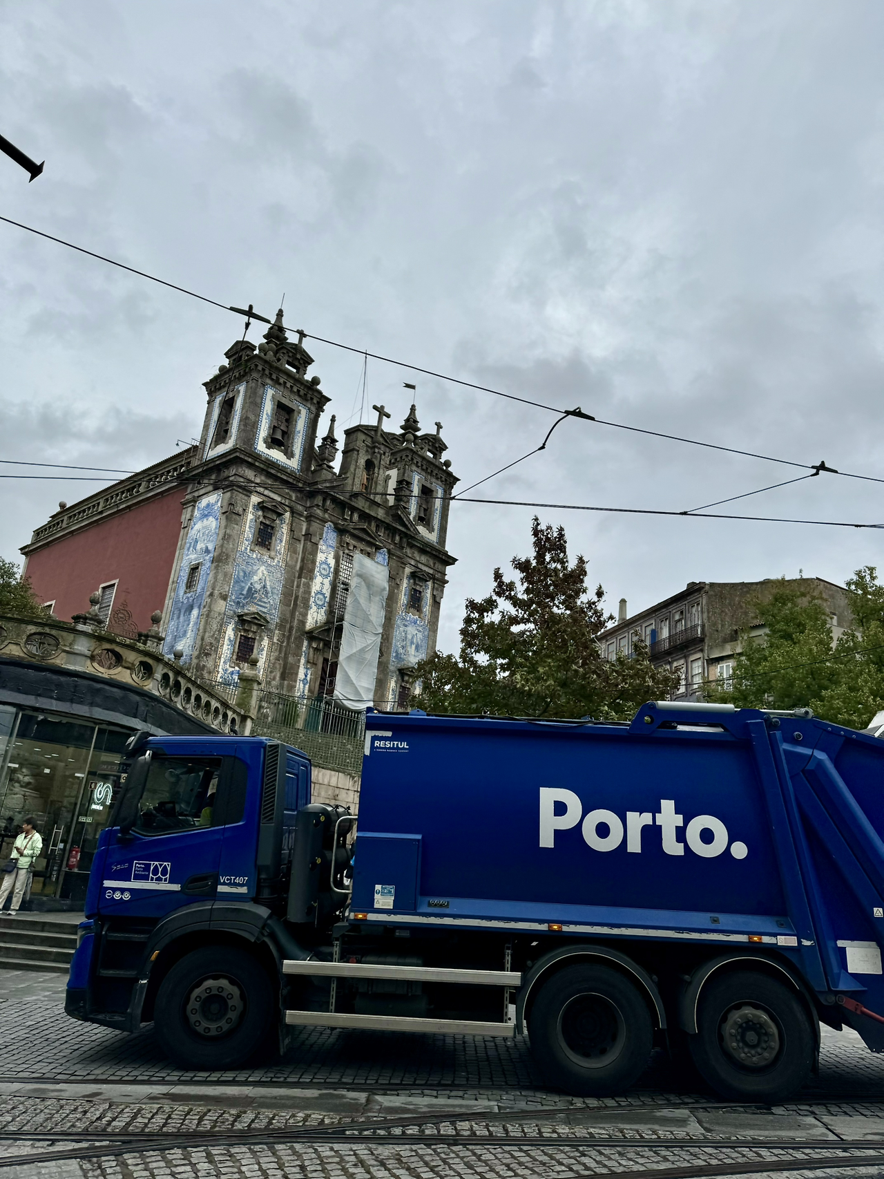 해리포터의상의 영감을 받았다는 코임브라 대학교의 교복이었고 중세시대 느낌과 주변 건축물의 배경이 꽤나 잘 어우러진다. 조금 더 이동해 성당 앞을 지나가는 길. 성당 외관 공사 중이었기에 아쉬운 데로 성당도 멋지지만 때마침 지나가는 파란색 쓰레기차까지 멋지다. 다소 미화된 기억인지 모르겠으나 쓰레기차까지 도시 미관을 해치지 않는 느낌이라 눈이 즐겁다.