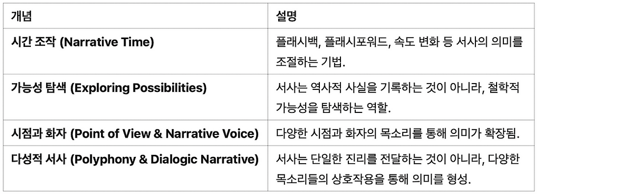 - 그러나 리쾨르는 모든 이야기, 심지어 허구도 일정한 역사적 맥락을 가지며, 세계관을 형성하는 감정적 모델을 제공한다고 주장.
