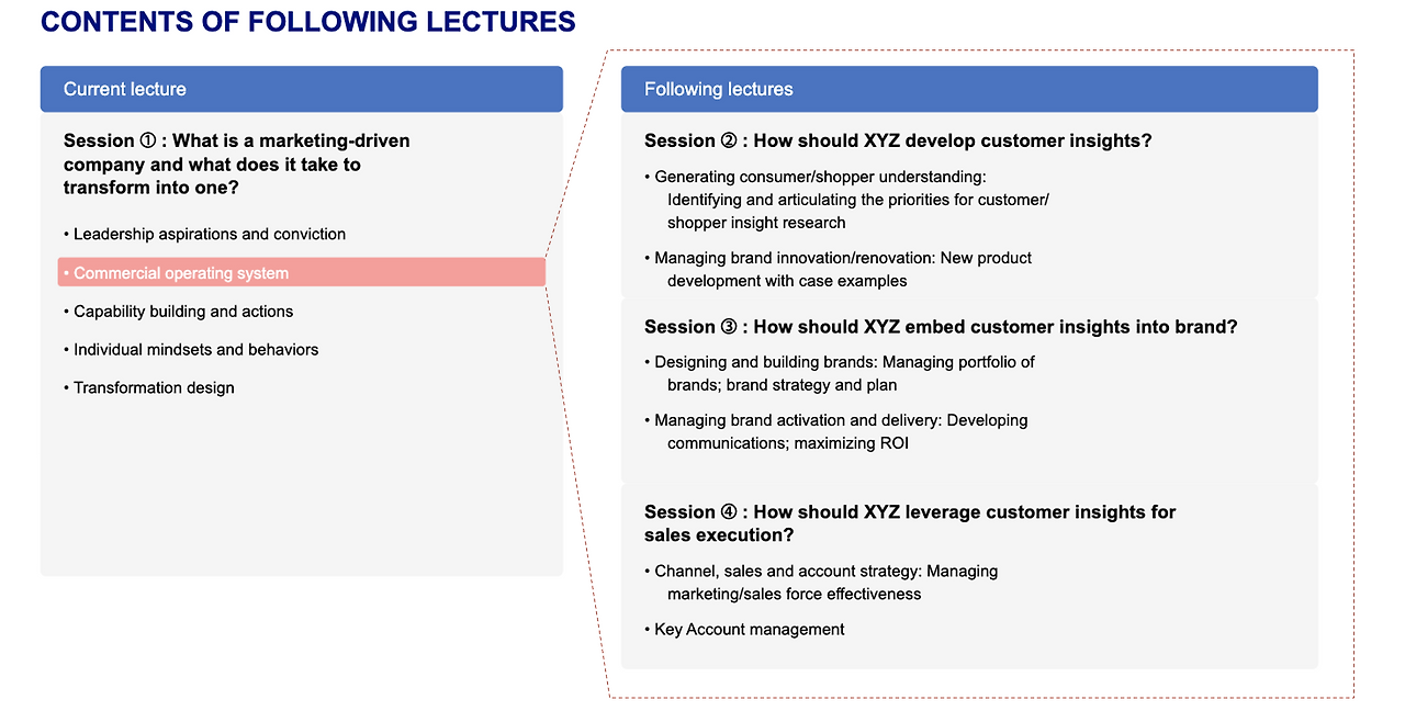 - Commercial Operating System의 마지막 단계로, 고객 인사이트를 기반으로 한 실질적인 영업 성과 창출 전략을 논의할 것입니다.