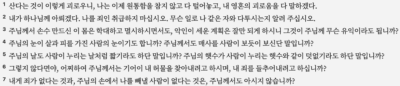 고난의 이유를 묻는 욥 (10:1–7)
