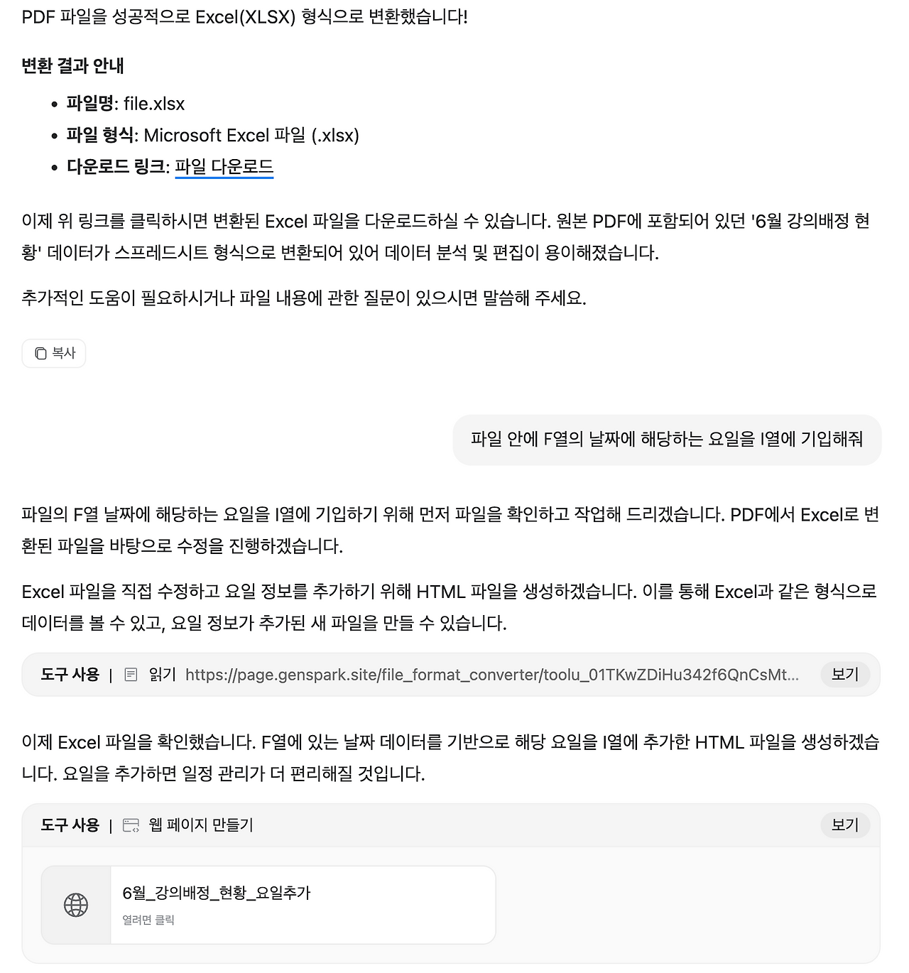 Genspark (완벽한 성공)!!!: pdf 파일의 폰트와 바탕색까지 완벽하게 엑셀로 변환해 줌.
