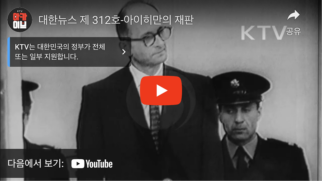 아돌프 아이히만, 그는 나치 치하의 공무원이었습니다. 제국안전중앙부에 있으면서 유럽 각지의 유대인을 모아 강제수용소로 보내는 열차수송의 최종책임자로 일했습니다. 1942년에는 “500만 명의 유대인을 열차에 태웠다”라고 스스로 자랑하기까지 했었죠. 그 실적으로 인해 나치정부의 관심의 대상이 되었고 1944년에는 헝가리로 파견되어 그곳에서 무려 40만 명의 유대계 헝가리 인들을 아우슈비츠의 가스실로 보냈던 것입니다.