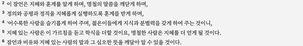 잠언 전체에 대한 도입부 역할을 하며, 지혜의 성격과 목적을 간략히 요약합니다.