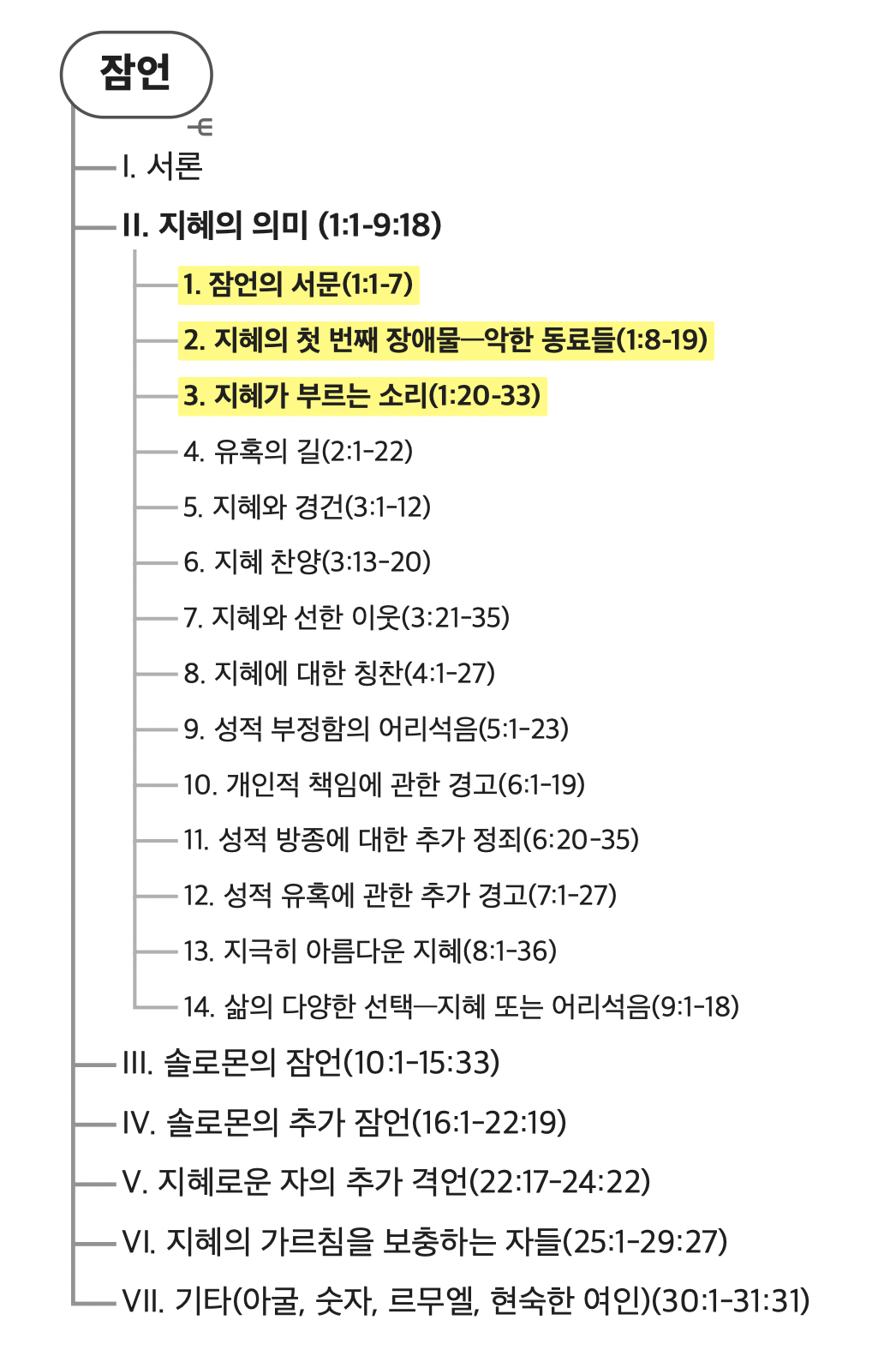 지혜의 초청은 누구에게나 열려 있으며, 이를 받아들이는 자는 안정과 평안(1:33)을 얻게 됩니다.