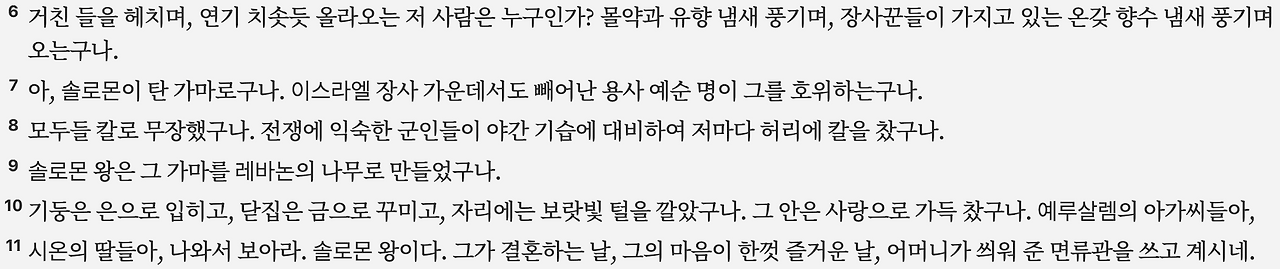 3:6–11 솔로몬의 가마와 여인의 상상