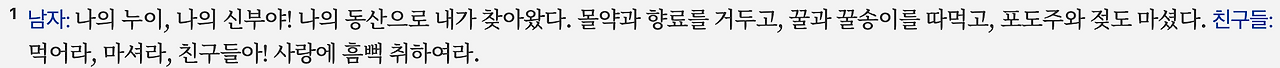 이 시는 남자의 시선으로 여인이 주는 감각적, 감정적 영향력을 묘사합니다. 그녀의 눈빛, 몸짓, 입술의 향기, 그리고 말투까지 모든 요소가 남자를 황홀하게 만듭니다. "누이"와 "신부"라는 표현은 문자적인 관계를 나타내기보다는 애칭이나 친근감을 담은 상징적 호칭으로 이해하는 것이 자연스럽습니다.
