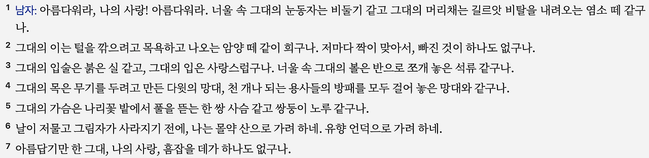 4:1–7 여인의 아름다움에 대한 찬미