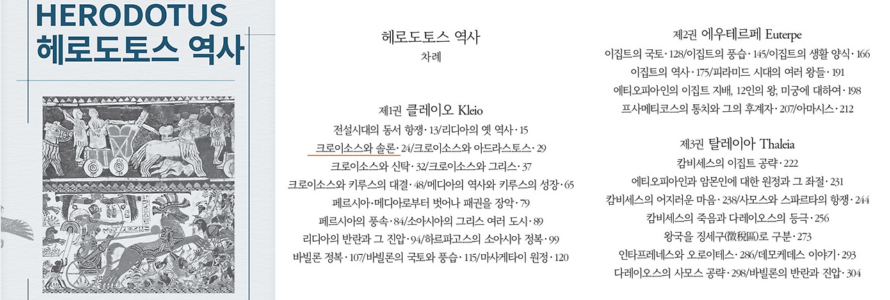 1. ⟪역사⟫ 헤로도토스, 천병희 역, 도서출판 숲, 2009. 제1권 1-94장.