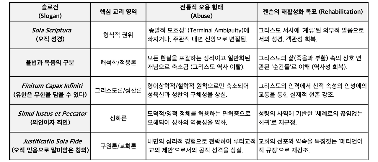 따라서 ‘오직 성경’은 개인적 해석이 아니라 그리스도께서 말씀하시는 객관적 사건으로, ‘율법과 복음’은 추상적 교리가 아니라 십자가와 부활의 역사적 현실로 다시 이해되어야 한다.