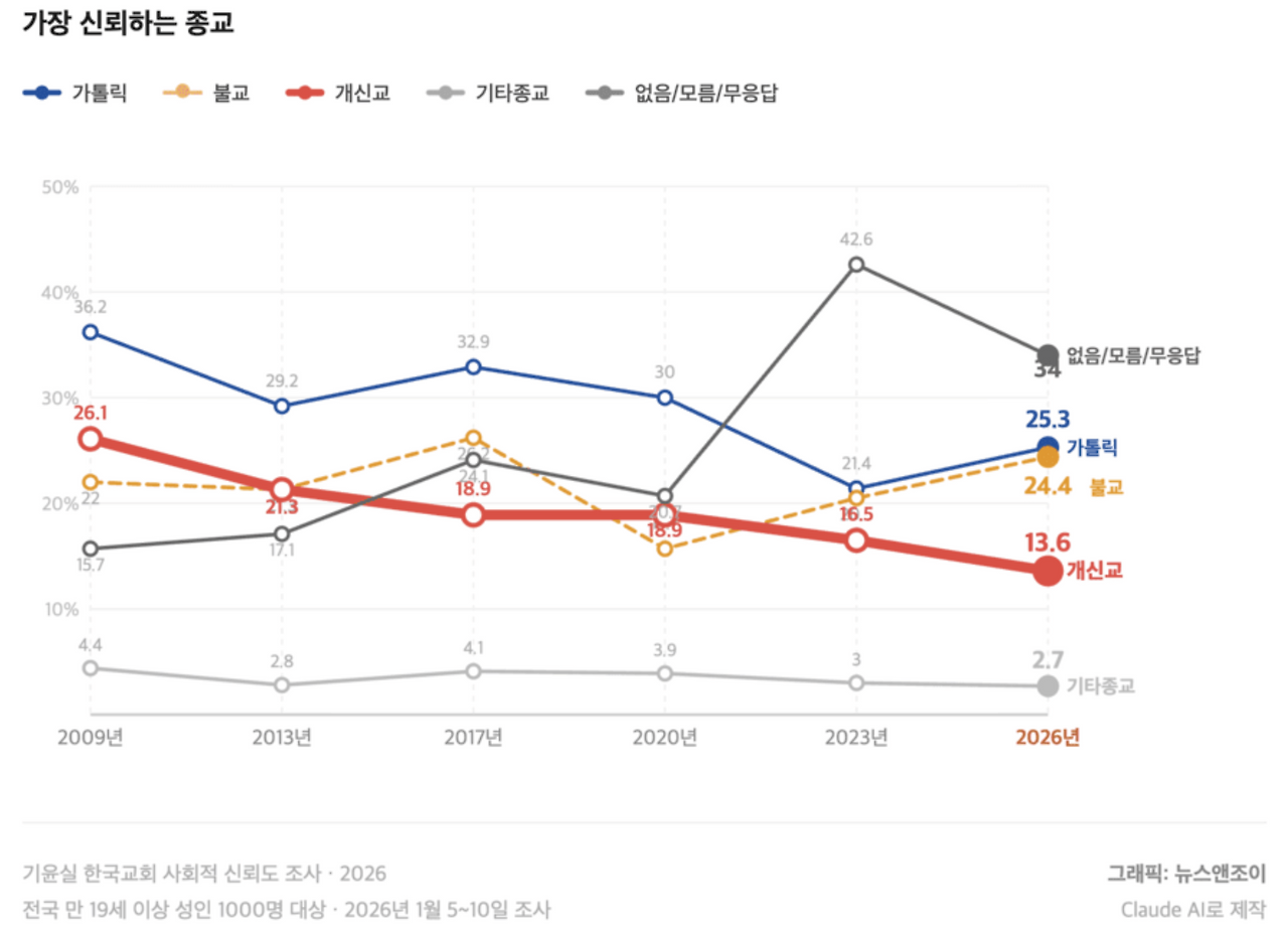 6. 2026년 한국교회의 사회적 신뢰도 여론조사 결과, 기독교윤리실천운동, 2026.