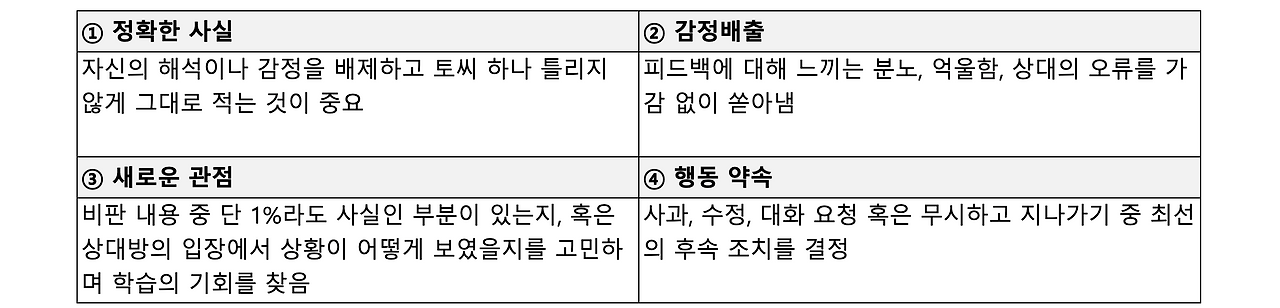 상대방의 비판적 피드백에 대처하는 작은 방법(4열 분석법)