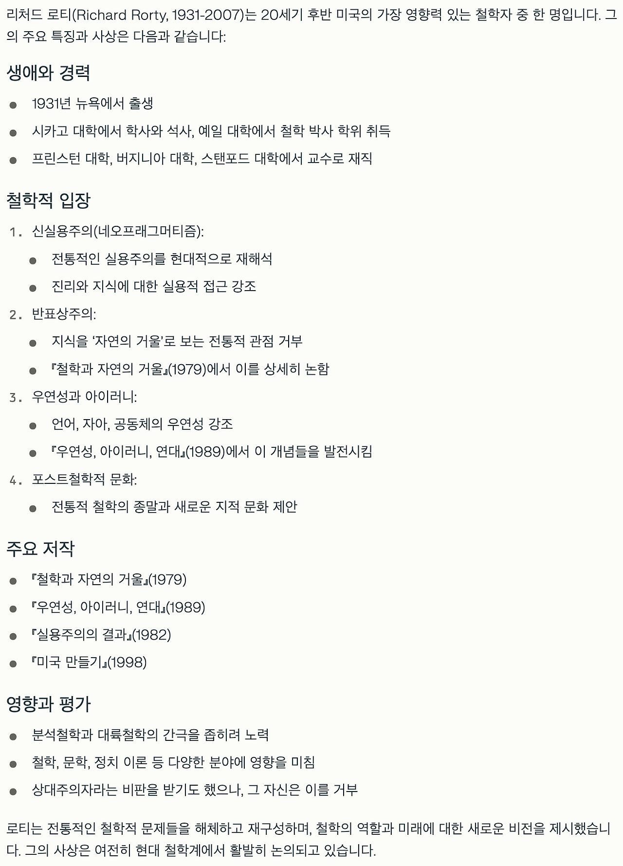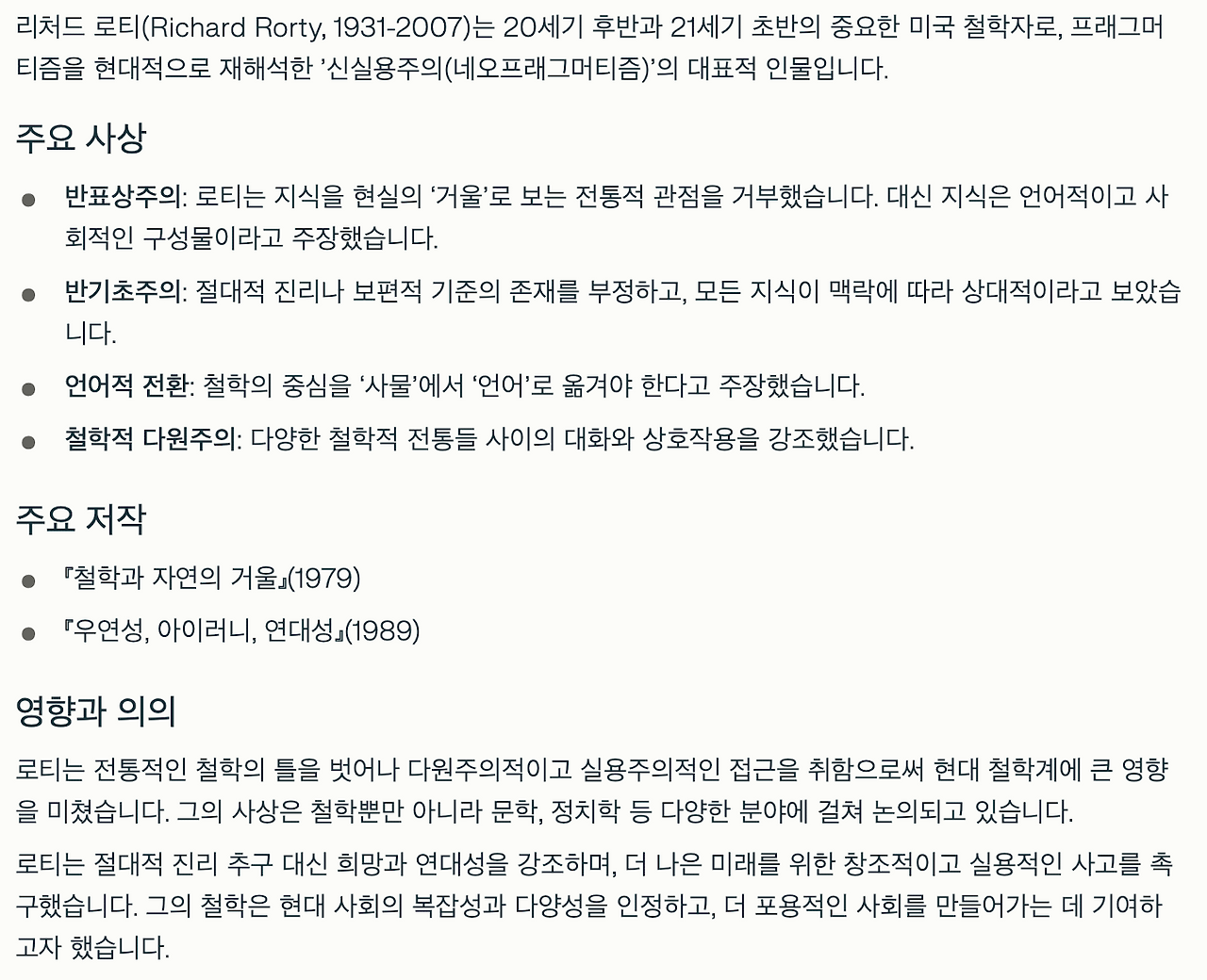 로티는 '진리'의 전통적인 개념에 회의적이다.