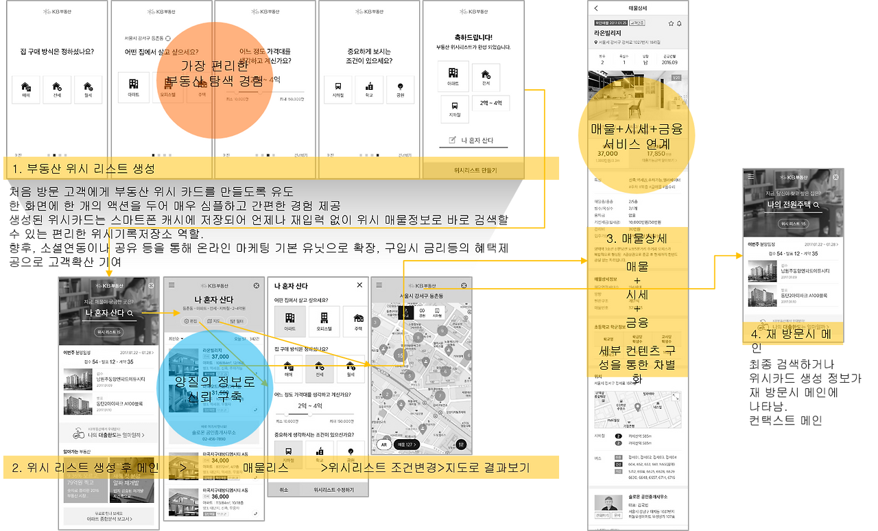 어떻게 보면 명료하고 명확한 시스템이나, IT 관계자들은 알 것이다. 이것이 본격적인 야근의 시작이라는 것을... 또한 KB 부동산 플랫폼은 아래와 같이 Universal한 고객을 대상으로 부동산 Total 정보를 제공하기로 하였으며, 웹/앱이 채널 별 특성에 맞게 분배해야 함은 물론 KB국민은행과의 브랜딩도 통일성 있게 유지해야 했다. 따라서 메뉴별 기획자 간의 이해와 연결 또한 중요했는데 쉽게 말하면 UX설계, 생각하고, 고려하고, 반영해야 할 것들이 머리털 뽑히게 많았다.