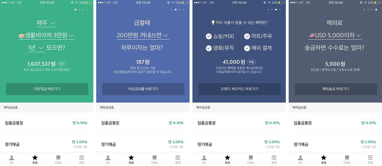예적금, 대출, 이용 시 혜택, 해외 송금 등 고객의 이용 빈도를 고려한 정보에 대한 설계와 가이드 노출