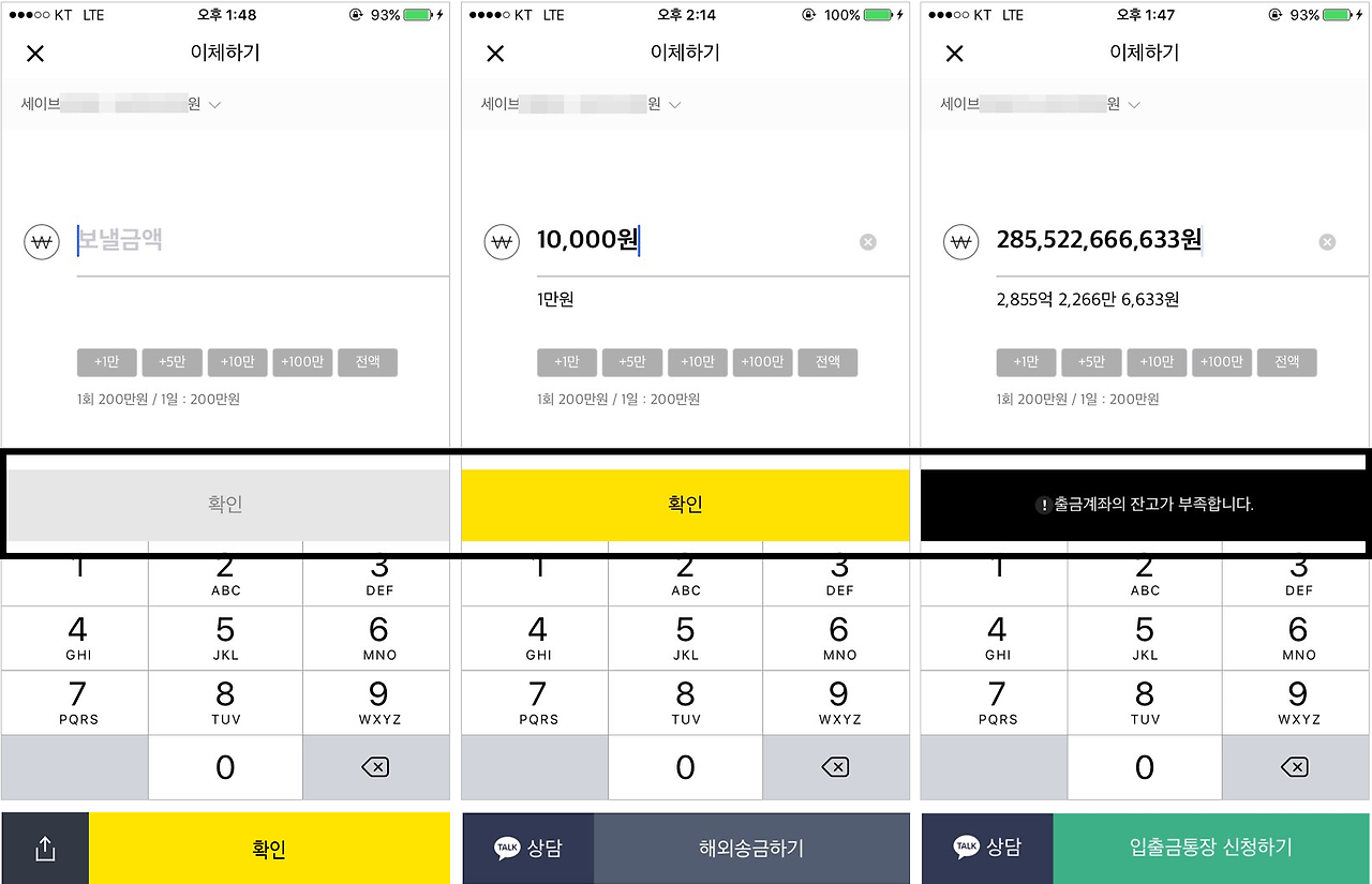 - 액션이 필요한 부분(확인 버튼, 키패드)과 고객이 의도하지 않은 정보(Modal View)를 하단에 배치하여, 버튼의 위치와 시선을 같은 곳에서 지속적으로 유지