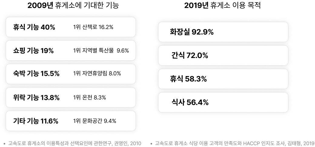 10년여 동안 변한 휴게소에 대한 이용자의 기대와 이용 목적의 차이가 흥미로웠습니다.