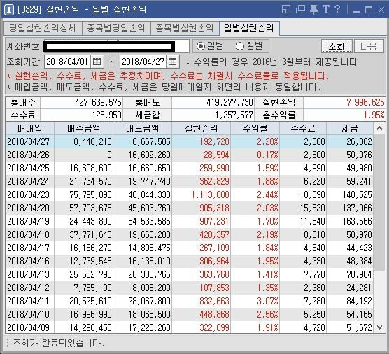 ※ 2018년 4월 현재 수익 현황