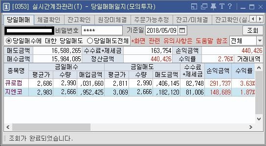 오늘은 장초반 하락 조짐이 보여 아예 모의투자로 진행했습니다.
