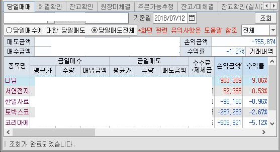 180712 (75만원 손실) 디딤,서연전자,한일사료