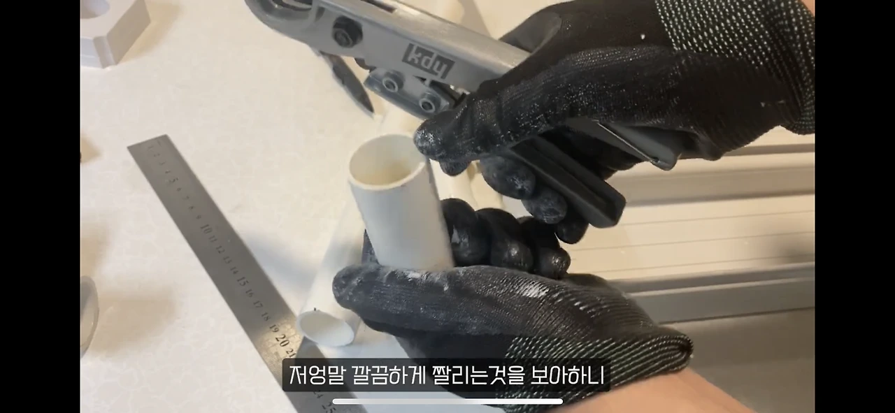 전에 파이프를 톱으로 자르니 단면이 일정하지 않아 이번에는 전용커터를 구매했는데 상당히 깔끔하고 큰 수고로움 없이 자를 수 있어 편했습니다