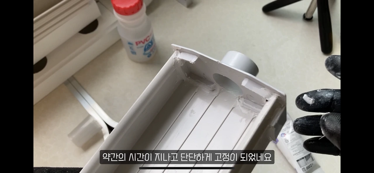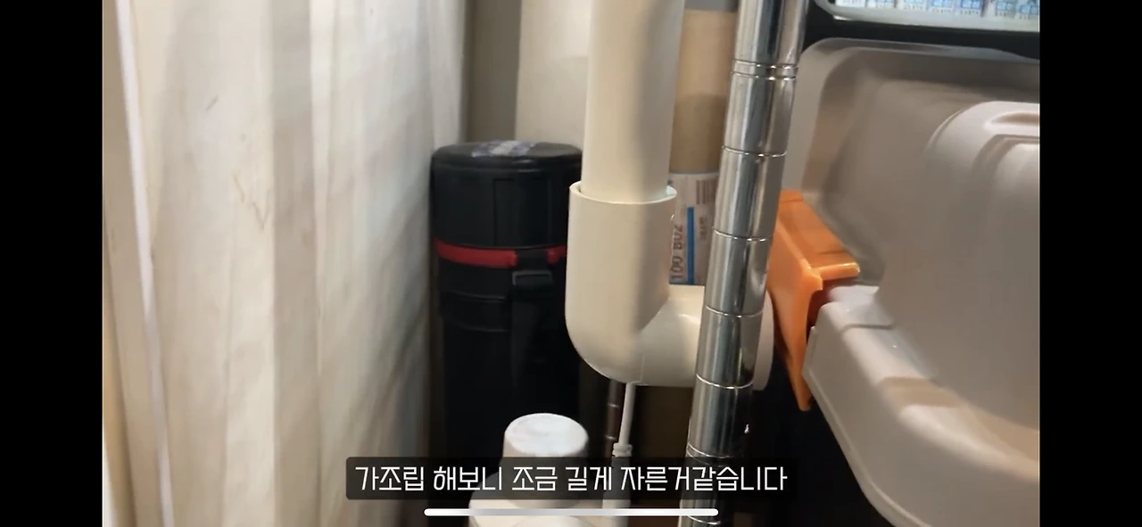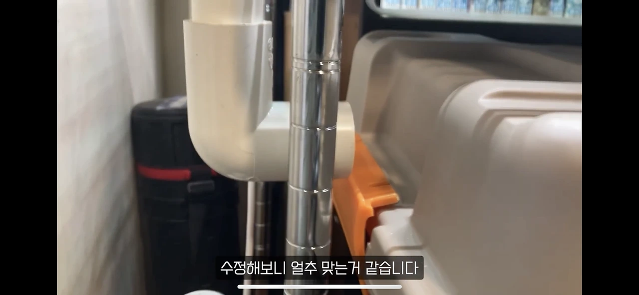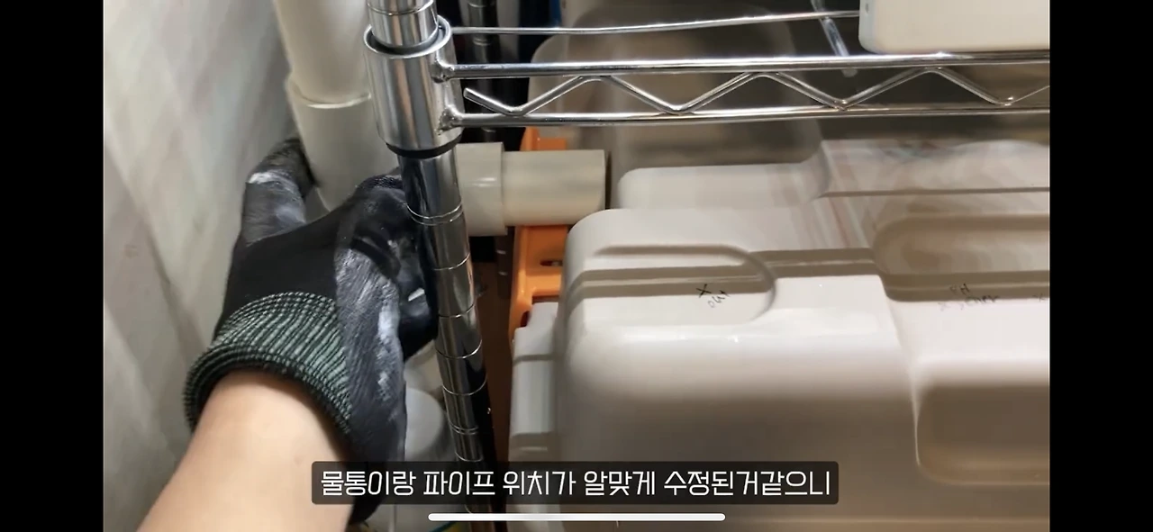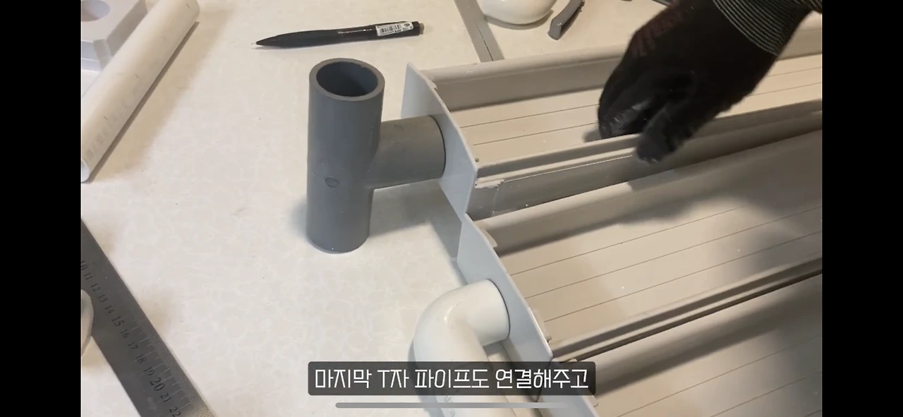 마지막은 T자 파이프를 통해 배수구를 만들어 줬고 저 통로로 물탱크로 이송되도록 설계했습니다
