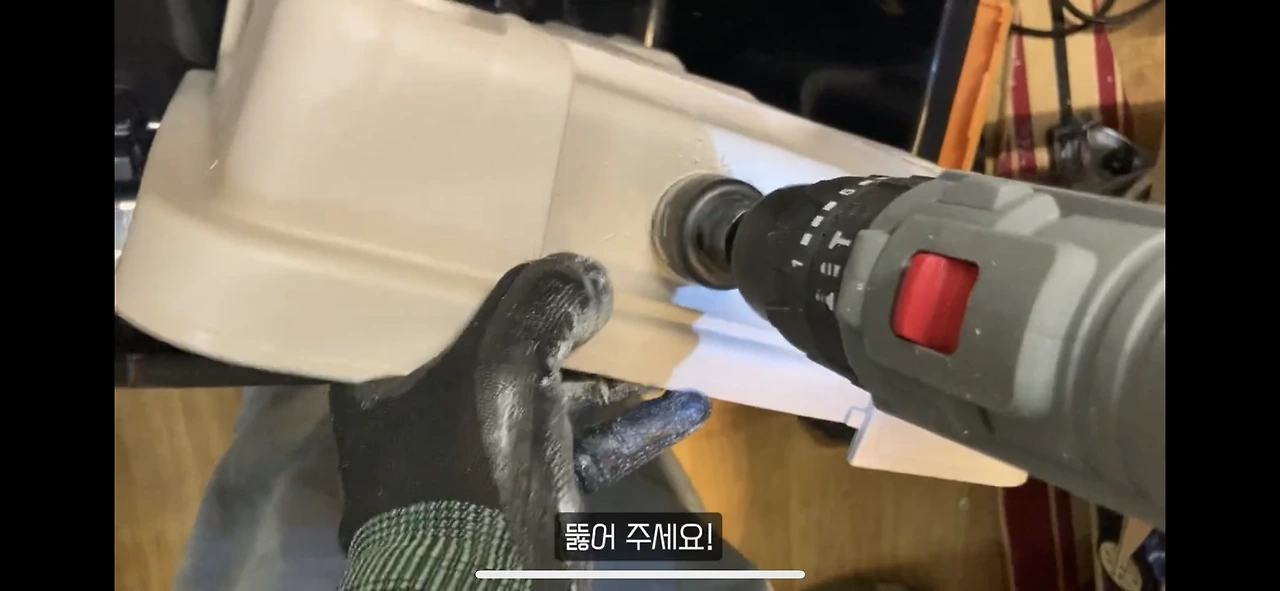 물탱크 상당 위치를 잡아서 타공을 진행합니다