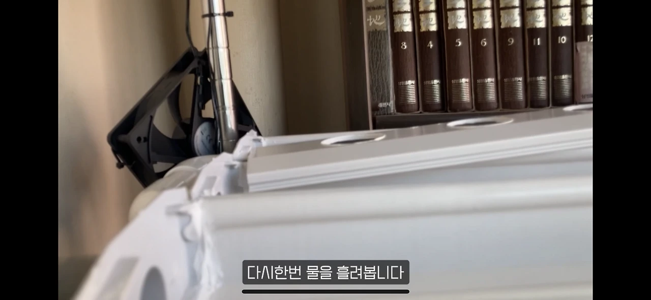 다음날 하루종일 물을 흘려보았지만 다행히 물이 새는 곳은 없어진 것 같습니다 그래도 혹시 모르니 3일 정도 켜서 확인하는 것이 좋습니다