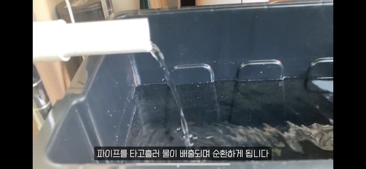워터펌프를 작동하고 물이 흐르는 것을 살펴보며 시간을 두며 지켜봤더니 부분적으로 누수가 있는 것을 확인했습니다 웬만한 흙바닥이나 야외나 하우스에서 한다면 그냥 나 두겠지만 집에서는 정말 큰일입니다 바로 침수가 될 수 있기 때문에 잘 살펴봐야 합니다 그리고 부분 누수가 있으면 물탱크가 시간이 지나면 물양이 줄어들기 때문에 양약의 비율과 여러 가지 문제를 겪을 수 있기 때문에 꼼꼼하게 작업해야 될 듯합니다