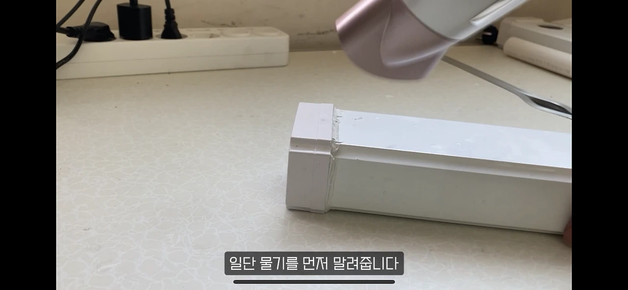 일단 누수가 발행하는 곳을 분해를 하여 드라이기로 말려줬습니다 실리콘 작업을 해도 미세한 구멍이 있다면 물이 새버리더군요 ㅜ 정말 찾기 힘들었습니다 해당 구멍을 말린 뒤 다시 한번 실리콘으로 마감작업을 해줬습니다