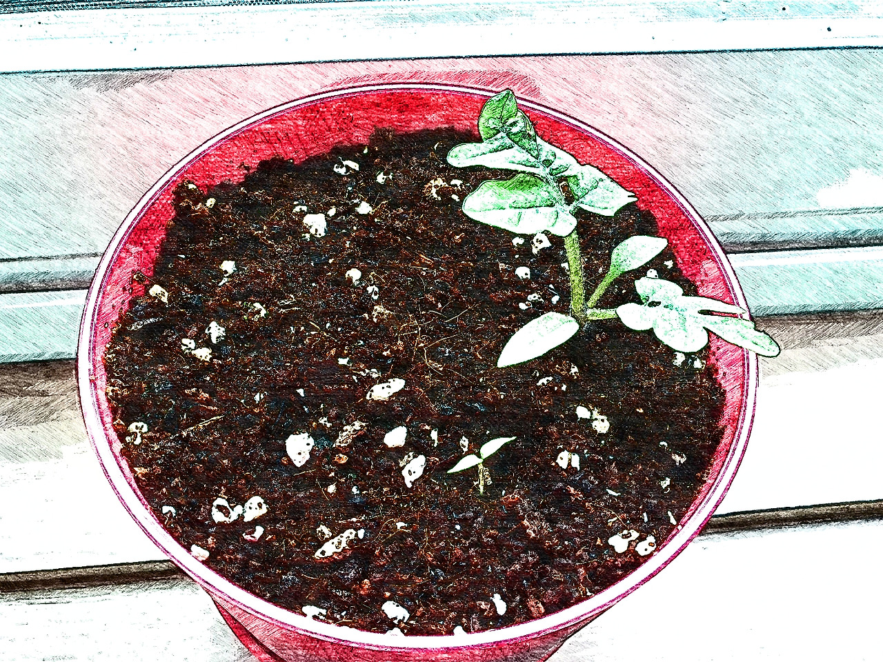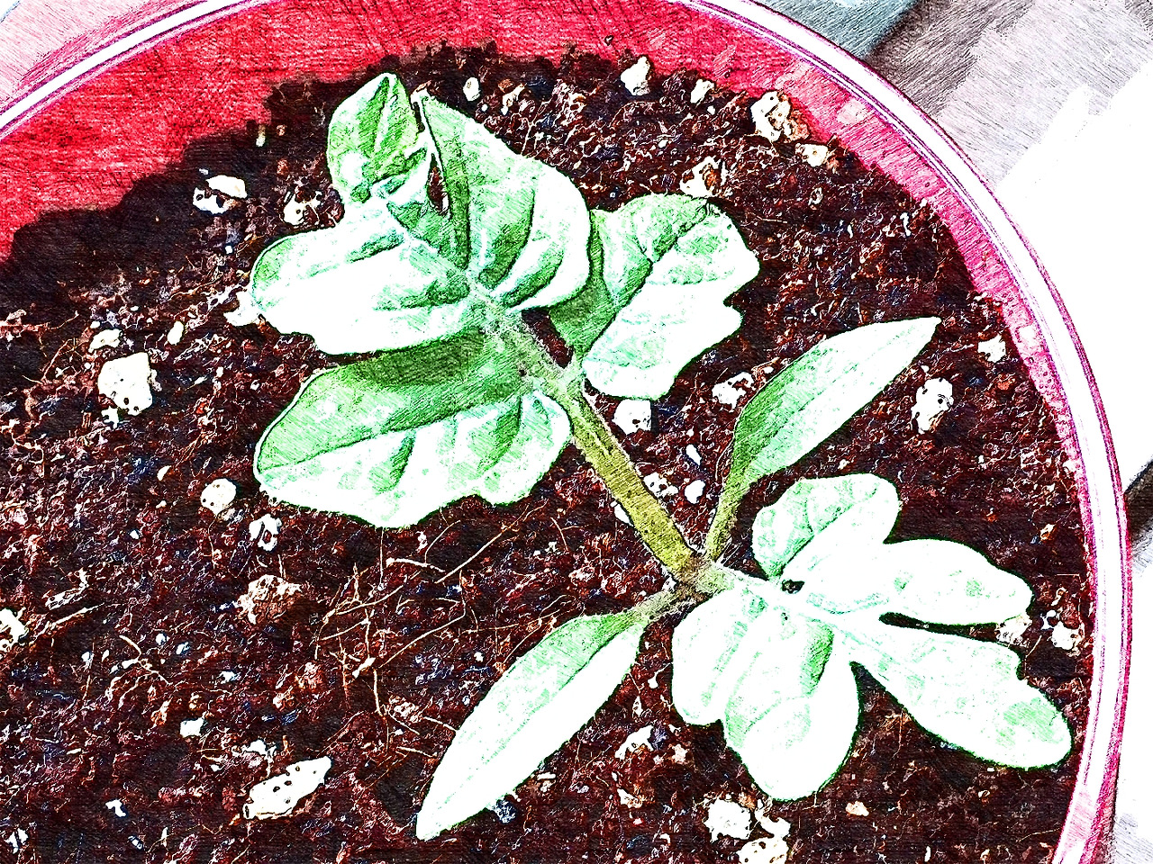 2주가 되도록 다른 씨앗은 소식이 없었다. 그래도 어렵게 움튼 그 한 개의 새싹은 내 시선을 한 몸에 받으며 무럭무럭 자라났다. 2개의 잎은 어느새 4개로 성장하여 쭉쭉 양 옆으로 뻗어나갔다. 아무리 기다려도 소식이 없는 다른 씨앗들은 아쉽지만 잊어버리기로 했다. 흙속에 파묻혀 꽁꽁 숨어버린 그들을 다시 찾을 수가 없었다.
