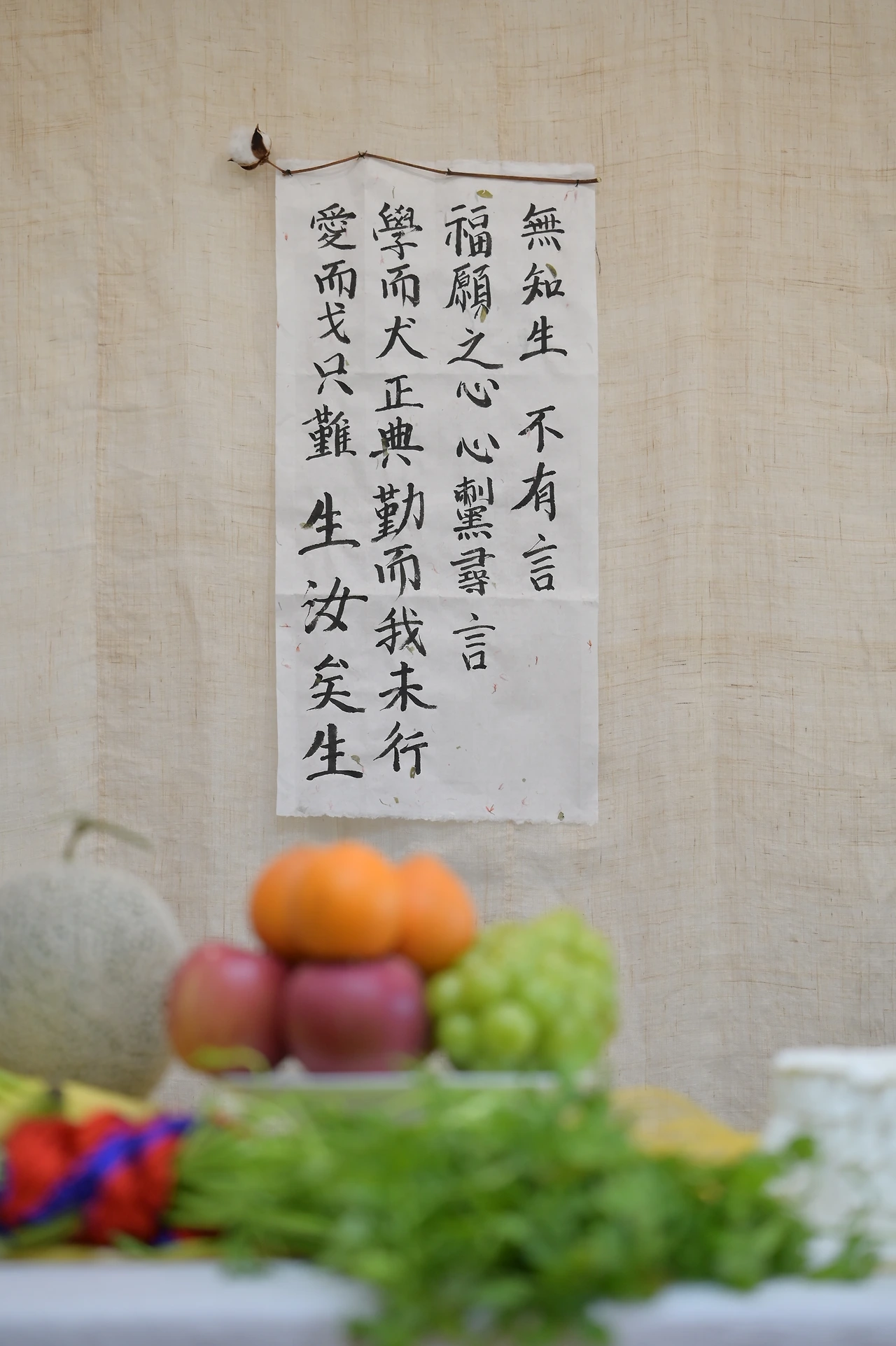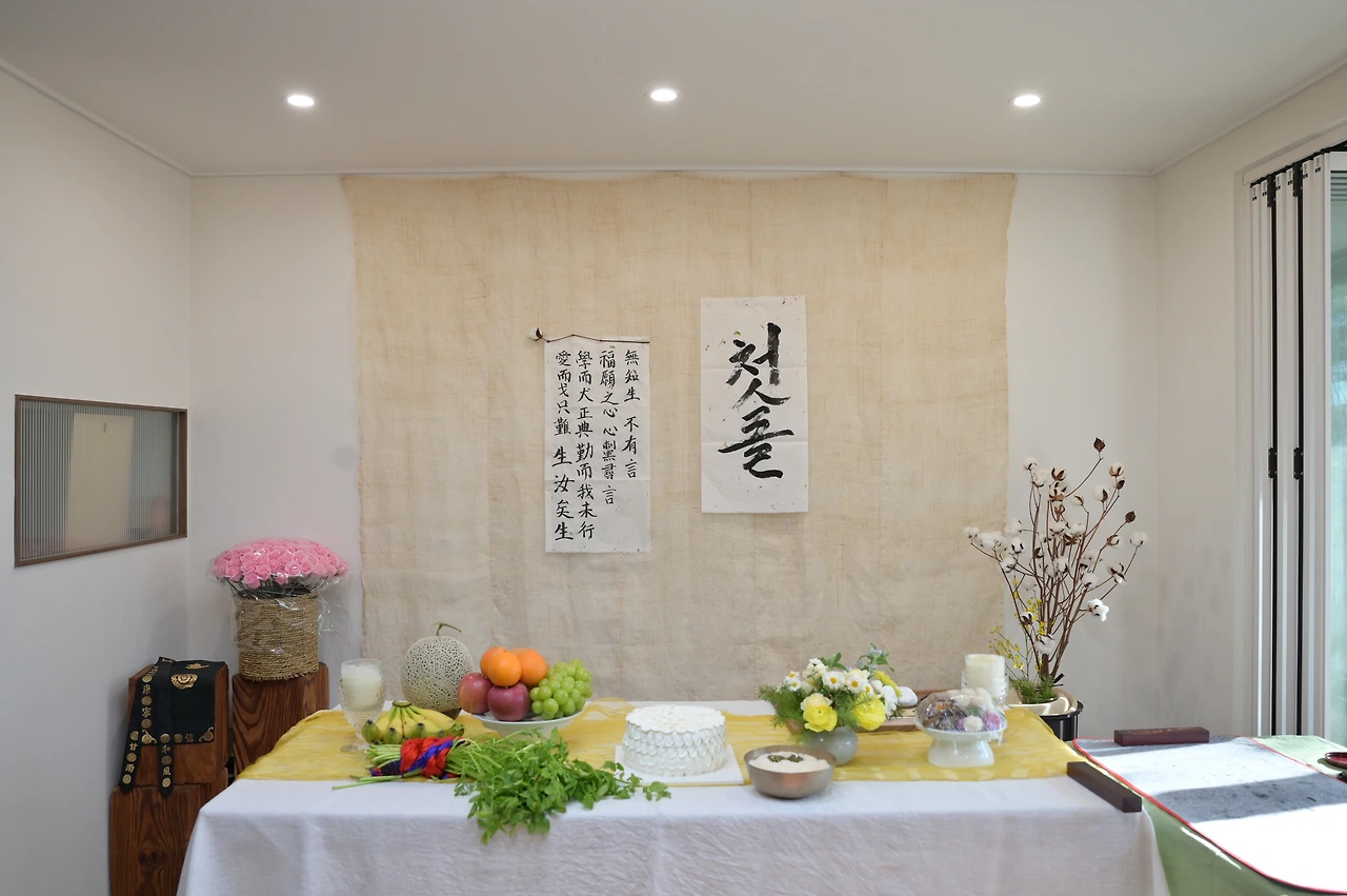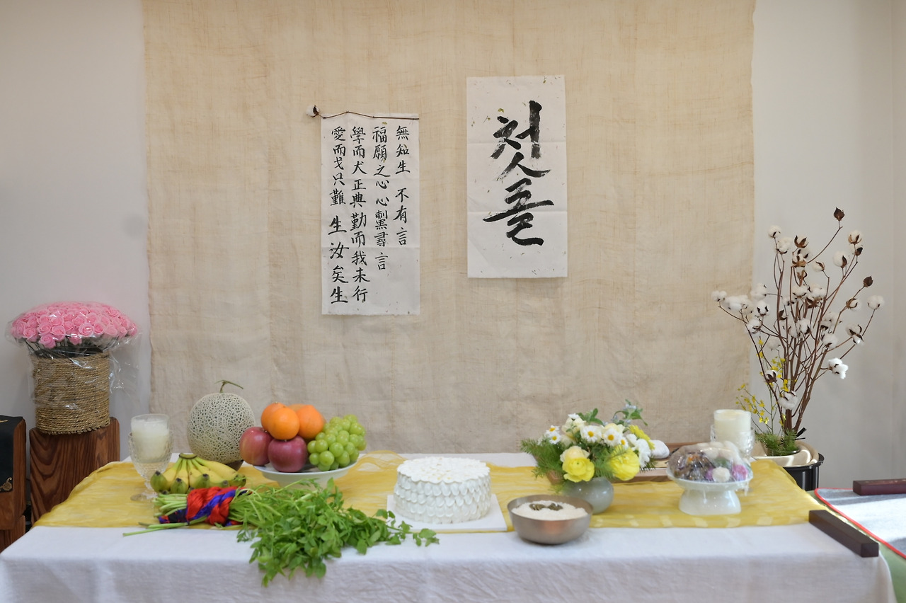 여름에 쓰던 삼베 이불을 벽에 걸었다. 남편은 잘못하면 거지 같을 수 있다고 우려했지만, 생각보다 고급졌다. 병풍 대신 한시와 첫돌을 직접 써서 걸었다. 한시는 양희은의 ‘엄마가 딸에게’라는 노래 가사 일부를 한시로 지었다. chat gpt와 네이버 검색의 도움을 얻었지만, 대학시절 명심보감 한 권을 외우면서 익힌 한문을 기반으로 직접 지었다. 남편은 어릴 때부터 서예를 오랫동안 배운 덕분에 꽤나 잘 썼다. 먹이랑 붓이 몇 년째 쓰지도 않고 자리만 차지해서 버리고 싶었는데, 이제 버리자는 말 하기 힘들어졌다. 목화는 아버님이 횡성에서 키우셨던 것을 가져와서 가지치기하니 제법 멋있어졌다. 가지치기하면서 나온 목화씨는 당근으로 무려 4명에게 나눔 했다.