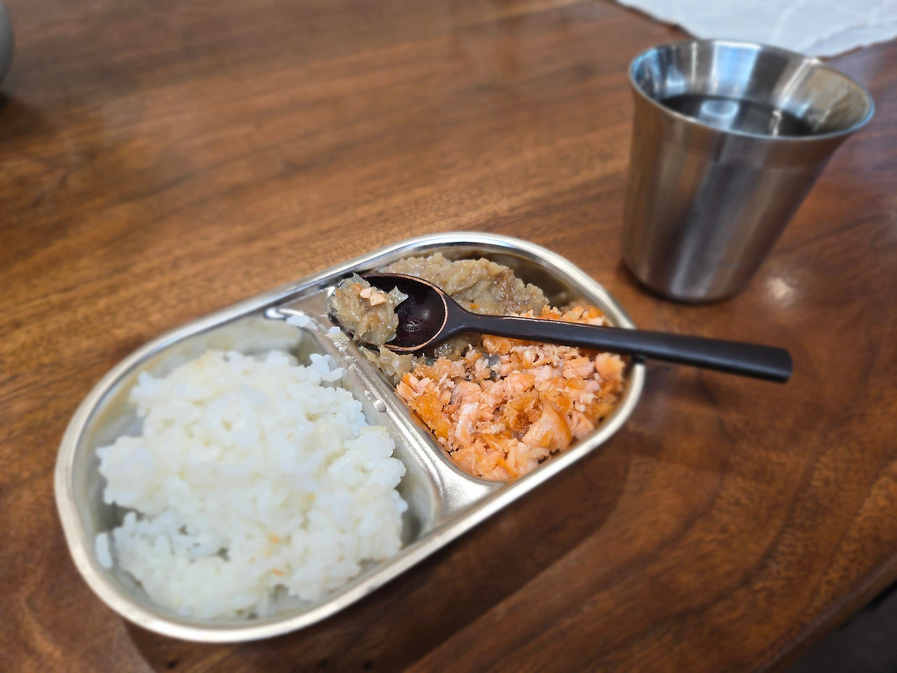 평소 식당 가면 간식처럼 밥알을 줬었는데 맛나게 받아먹었다. 그래서 이제 죽에 밥을 넣지 않고 밥과 죽재료 끓인 것을 따로 주고 있다. 즉, 밥과 반찬의 형태이다. 밥도 진밥이 아닌 어른밥 수준으로 고슬고슬한 밥이다. 너무 찰기나 물기가 없으면 뱉어내긴 한다. 맛없다고 뱉기도 한다. 죽으로 재료가 한제 어우러지지 않으면 어떤 반찬은 맛이 없기도 하다. 뭐든 가리지 않고 잘 먹는 편이라 양갱이가 뱉으면 뱉을만하다고 생각한다.