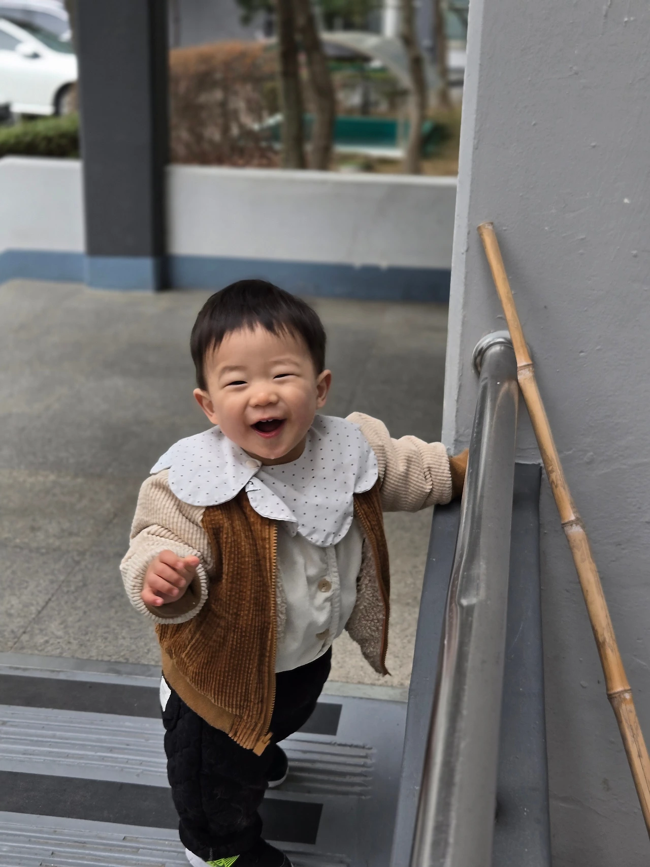 오늘은 몇 번 넘어지지 않고 잘 걸었다. 발걸음도 훨씬 빨라졌다. 지나가는 분들에게도 더 적극적으로 인사했다. 예전엔 뒤통수에 대고 용기 내서 인사하더니 오늘은 저 멀리 오는 사람에게 미리 인사하거나, 인사드릴 사람 없나 뒤돌아보기도 했다. 아장아장 걷는 애기가 인사하니 안 이뻐할 수가 있겠는가. 한 마디씩 하며 지나가는데 유모차에 태워 다닐 때보다 훨씬 주목받고 있다.