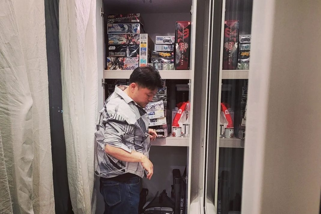 새끼손톱 반도 안 되게 작은 조각으로 건담 대가리를 조립하는 동안 옆에서건담이 들고 있을 무기를 조립하기도 한다. 어디까지나 그의 취미 존중 차원이다.