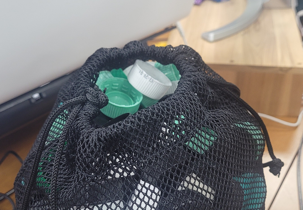 팀 내에선 플라스틱 뚜껑을 모으고 있다. 뚜껑 모으는 바구니가 꽉 차면 집에 가져가 깨끗이 세척해서 제로웨이스트 샵에 갖다 준다.플라스틱 뚜껑은 재활용되지 않아 버려진다고 한다. 모아 가져다주면 분쇄해서 책받침이나 반지 같은 상품으로 만들어 되판다.