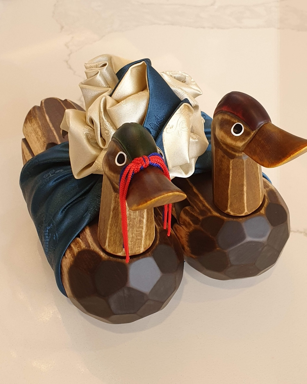 기러기는 신랑이 기러기 한 쌍처럼 잘 살겠다는 의미로 장모에게 드리는 것이다. 눈알이 무섭지 않고 싼 티 나지 않는 나무 기러기를 찾느라 한참 헤매었다.