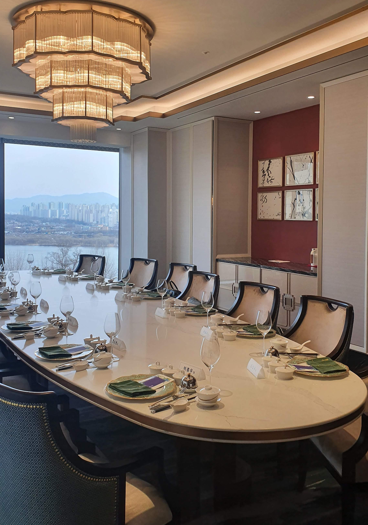 전망이 보이는 가장 넓은 룸으로 예약했다. 최대 수용 가능 인원이 13명이었는데 테이블을 큰 걸로 바꾸면서 14명이 되었다. 덕분에 신랑신부의 베프들까지 초대할 수 있었다.